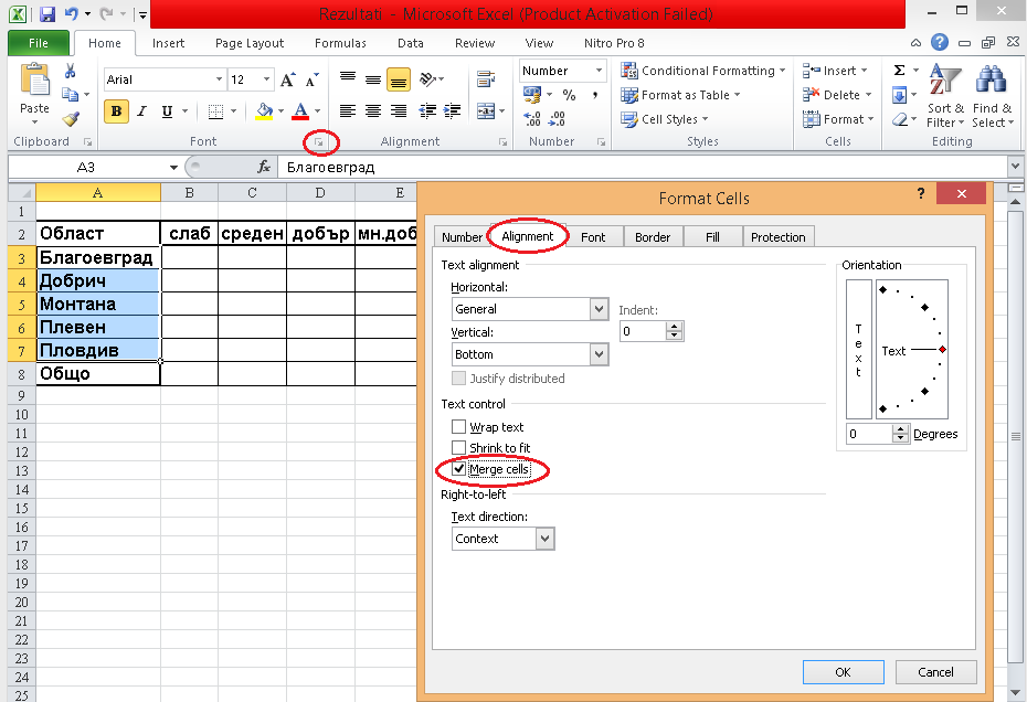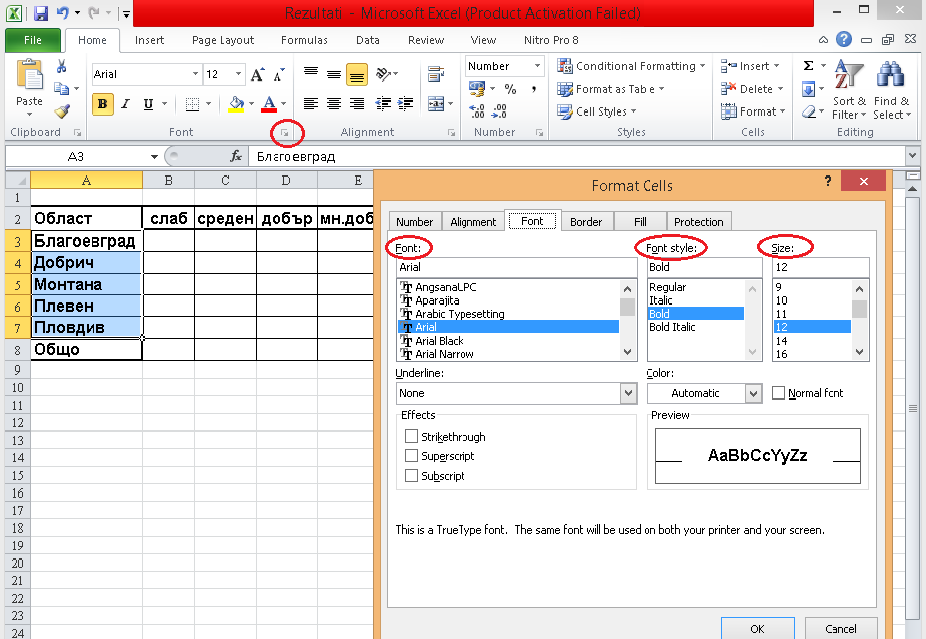 Microsoft Excel разполага с много възможности за представяне на данни в електронна таблица. ![]() Могат да бъдат променени шрифта, стила, размера и цвета на текста. Може да се променят също размера и фона на клетката, ![]() В някои случаи е удобно две и повече клетки да се слеят в една. ![]() |
