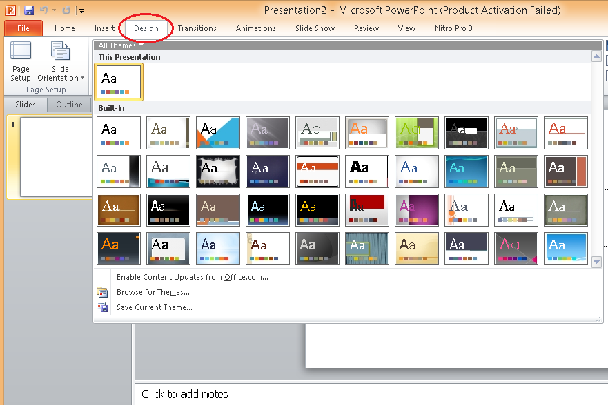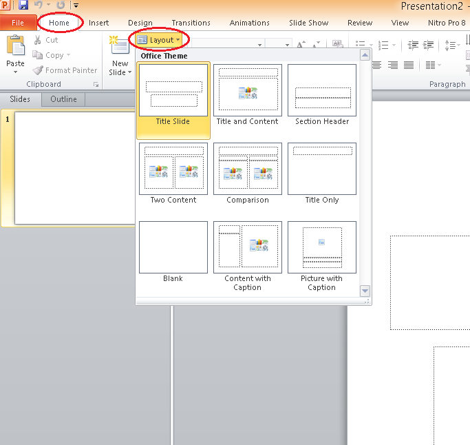 избира измежду набор от готови оформления. Оформелнието на слайда може да е избрано при първоначалното му вмъкване или