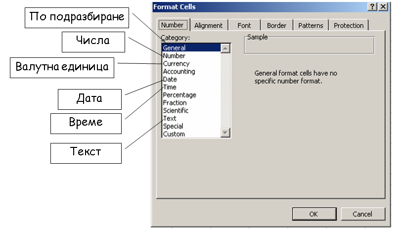 - Типове данни в клетка