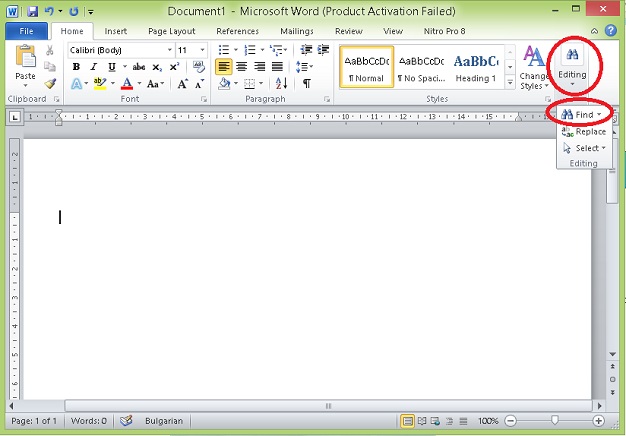 Прави се от раздела Editing или с клавишната комбинация Ctrl+F.